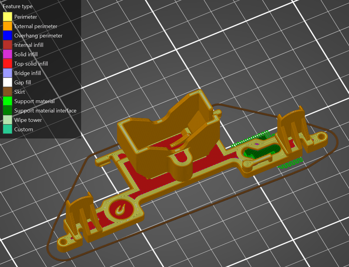 Support Material: Highly recommended for multiple overhang features: bridges above the left analog stick potentiometer pins, rumble motor wire clip, etc.